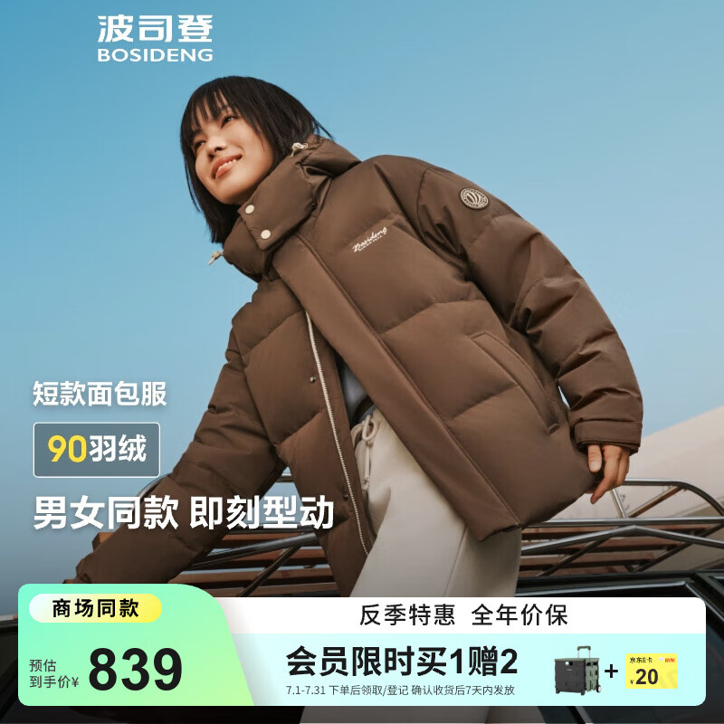 旗舰店波司登2025新款羽绒服男女同款情侣短款脱卸帽90绒修身外套B250245910XS 【店长推荐】褐菇棕|7C35 S 160/84A