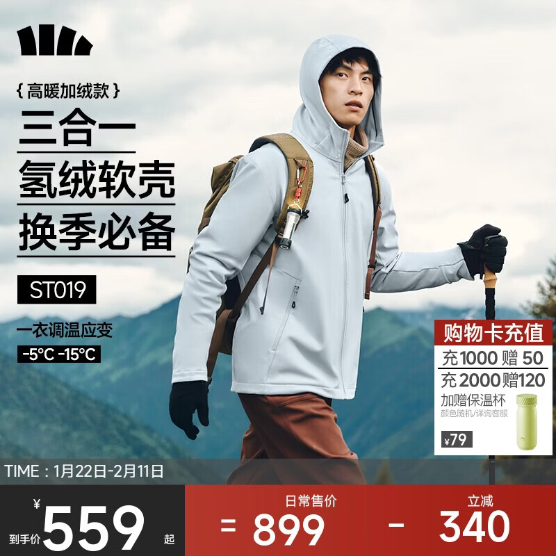自营蕉下(beneunder)男士夹克冲锋衣内胆外套户外防风抓绒衣高弹可拆卸ST019薄灰蓝XL