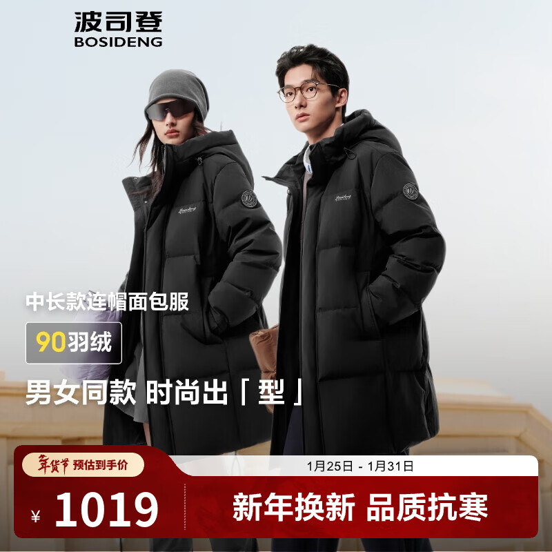 旗舰店波司登(BOSIDENG)25新品90绒羽绒服男女情侣时尚休闲百搭加厚中长连帽外套 黑色|8056 M 175/96A 体重约130-140斤