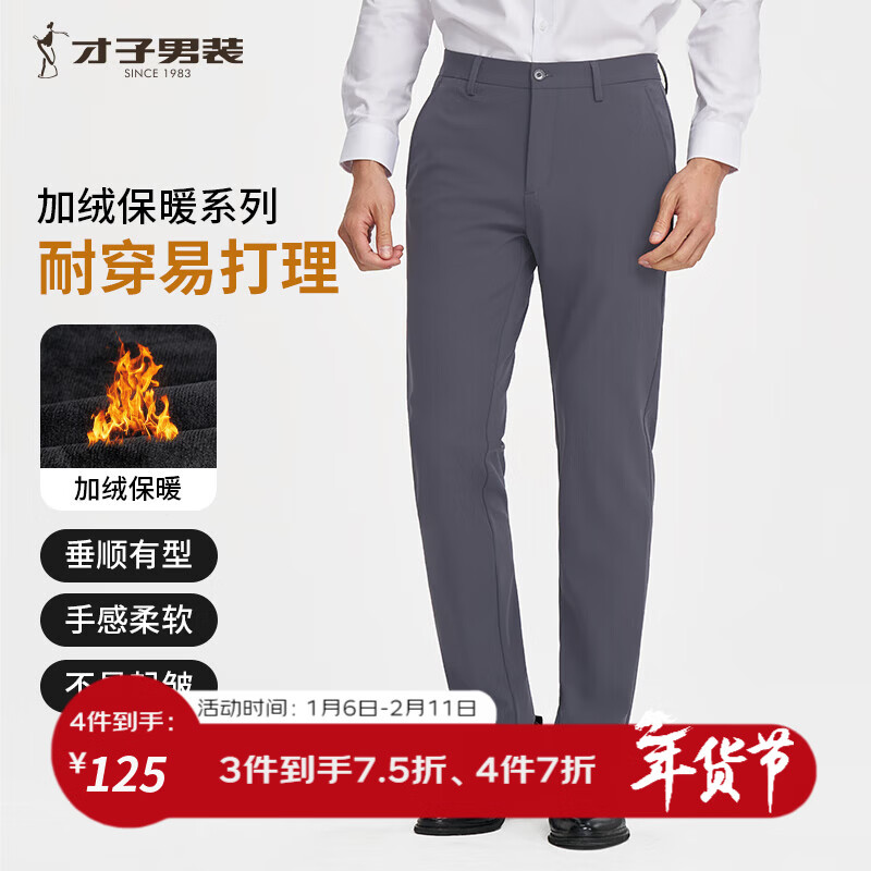 旗舰店才子(TRIES)才子男士休闲裤商务简约直筒长裤春秋新款弹力加绒休闲裤 灰色 33 84cm