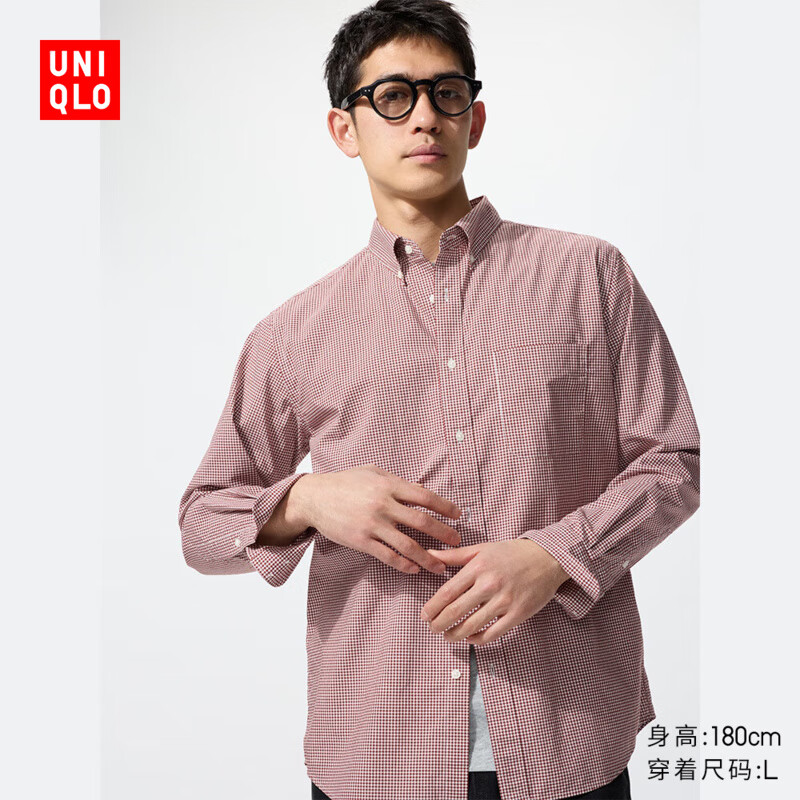 优衣库男装女装优质长绒棉格子衬衫长袖衬衣480648 18 暗红色 3XL