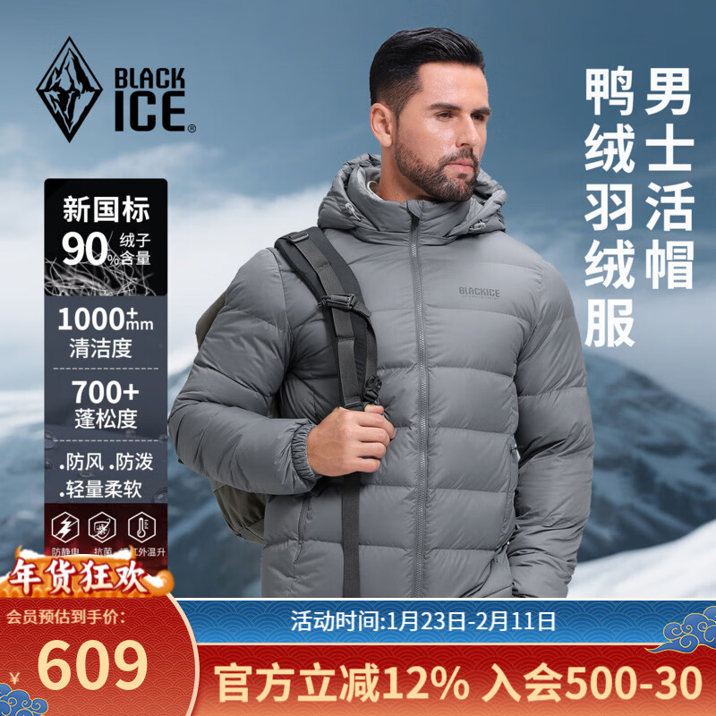 旗舰店黑冰冬季男款羽绒服700蓬鸭绒拒水羽绒户外短款防风活帽外套 F8908MJ 灰色 2XL (185)