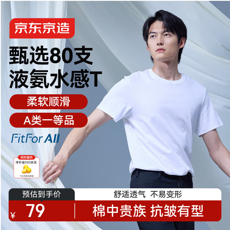 自营京东京造80支液氨男士T恤短袖男士打底衫内搭男装水感棉轻奢免烫抗皱 白XL