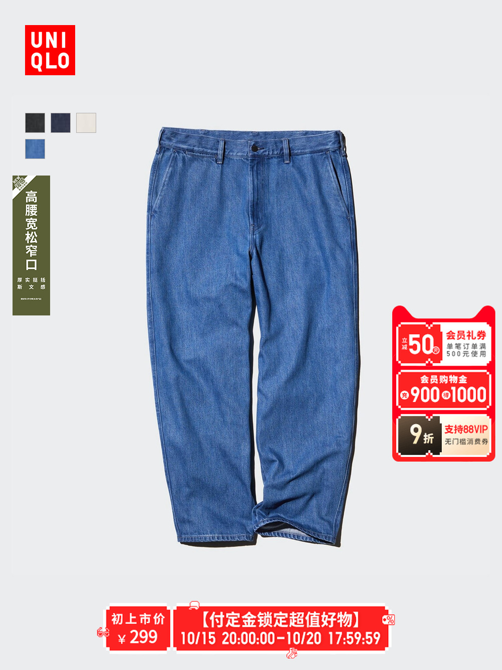 旗舰店预售优衣库男装女装宽松窄口牛仔裤水洗产品休闲裤长裤裤子475595