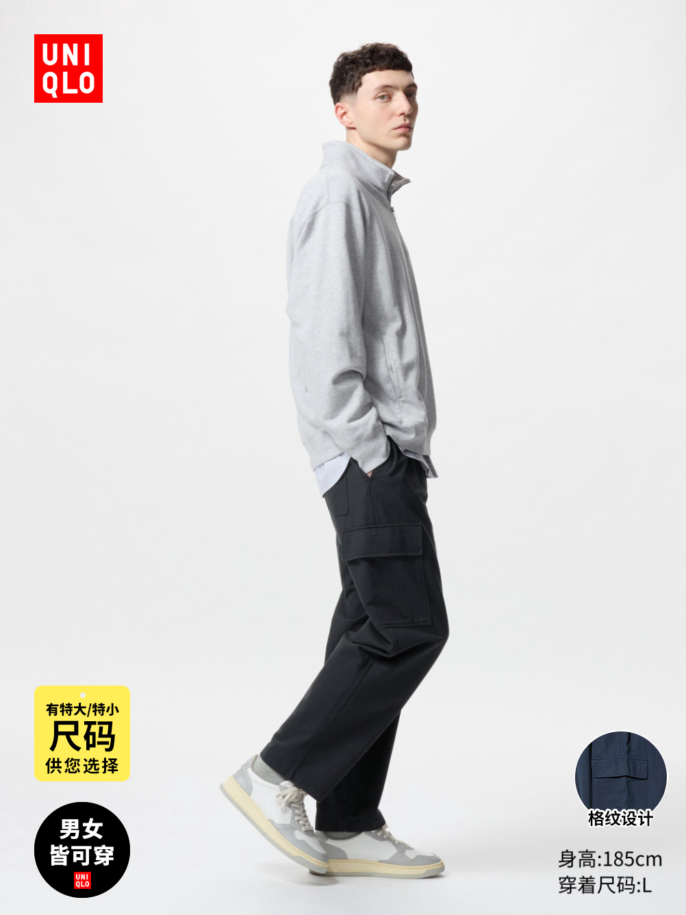 旗舰店【预售】优衣库男装女装同款水洗宽松休闲工装九分裤474100