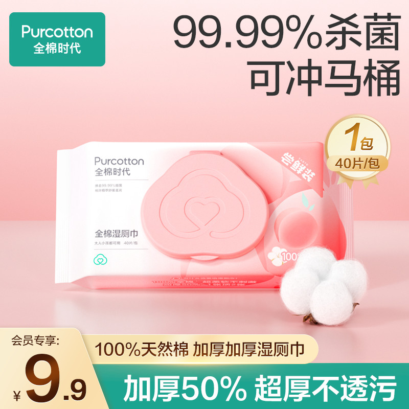 旗舰店【会员专享】全棉时代抽取式湿厕巾女性厕所湿巾擦屁屁私处40抽