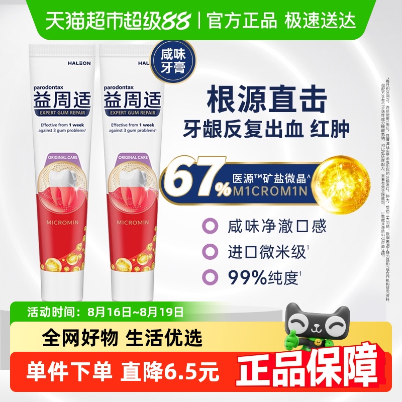 益周适parodontax美白去渍护龈防出血成人含氟咸味牙膏110gx2