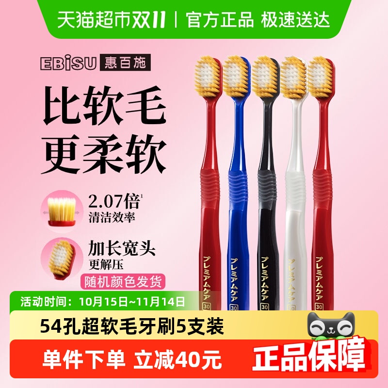 (颜色随机)惠百施日本进口宽头护龈牙刷超软毛54孔5支成人组合