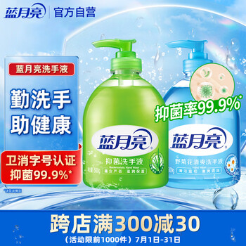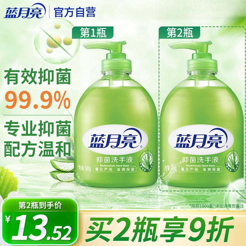 自营蓝月亮芦荟抑菌99.9%洗手液500g+清爽去油去腥洗手液500g泡沫丰富滋润