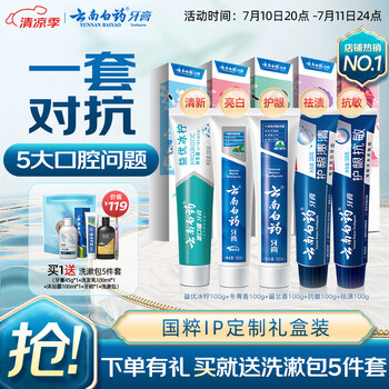 自营云南白药牙膏亮白护龈清新口气祛渍5效护口成人牙膏国粹礼盒套装5支500g