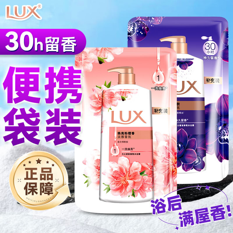 力士(LUX)香氛沐浴露补充袋装男女通用持久留香幽莲魅肤家用瓶袋组合装正品 幽莲魅肤200g+焕亮粉樱200g
