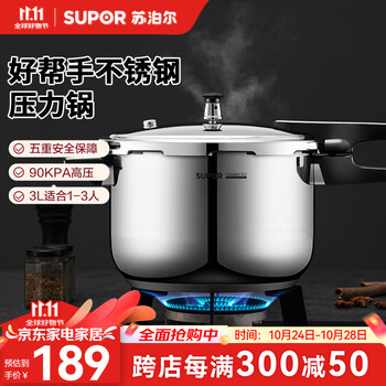 旗舰店苏泊尔(SUPOR)高压锅压力锅304不锈钢加厚好帮手多保险防爆大容量燃气电磁通用 【3升 1-3人】 18cm