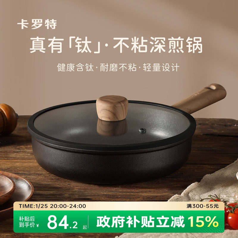 旗舰店卡罗特平底锅不粘锅家用钛锅牛排煎锅早餐煎蛋饼锅电磁炉炒锅专用
