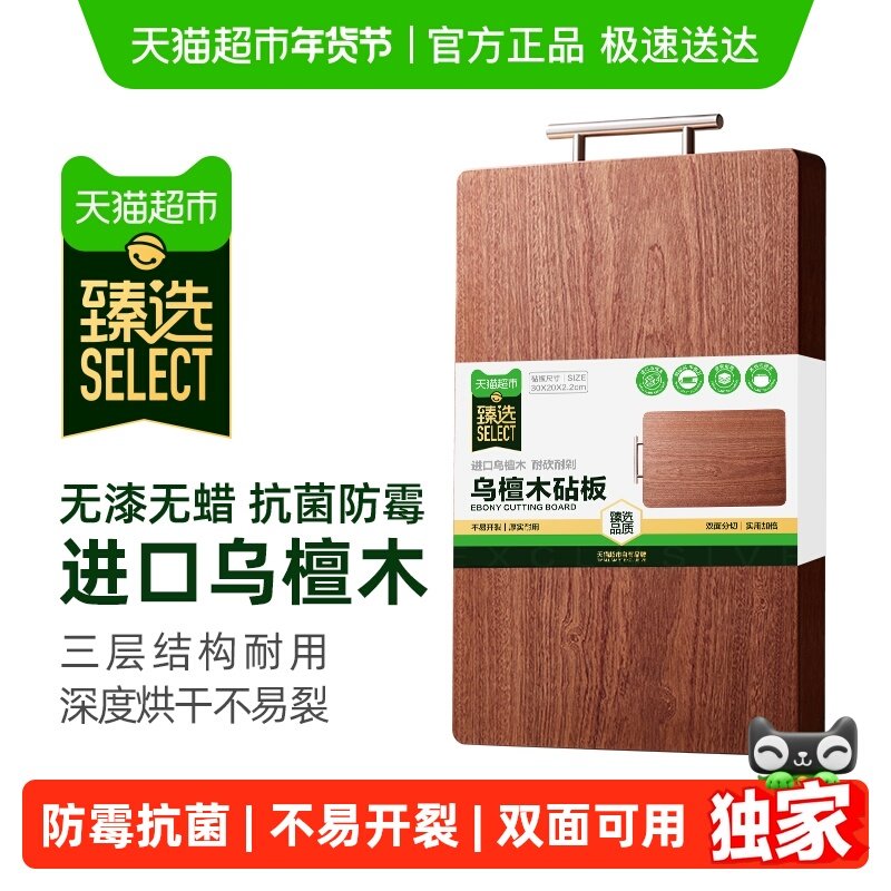 百亿补贴咚西整木切菜板抗菌防霉乌檀木砧板家用加厚案板实木切辅食双面小粘板 【整木乌檀 3-5人】大号40*28*2.2