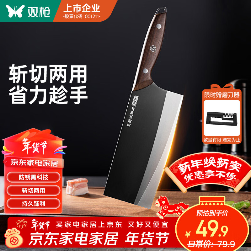 百亿补贴邓家刀家用锻打前切后斩两用刀砍骨剁切菜厨房不锈钢菜刀刀具文武专用刀 JB-7134AB