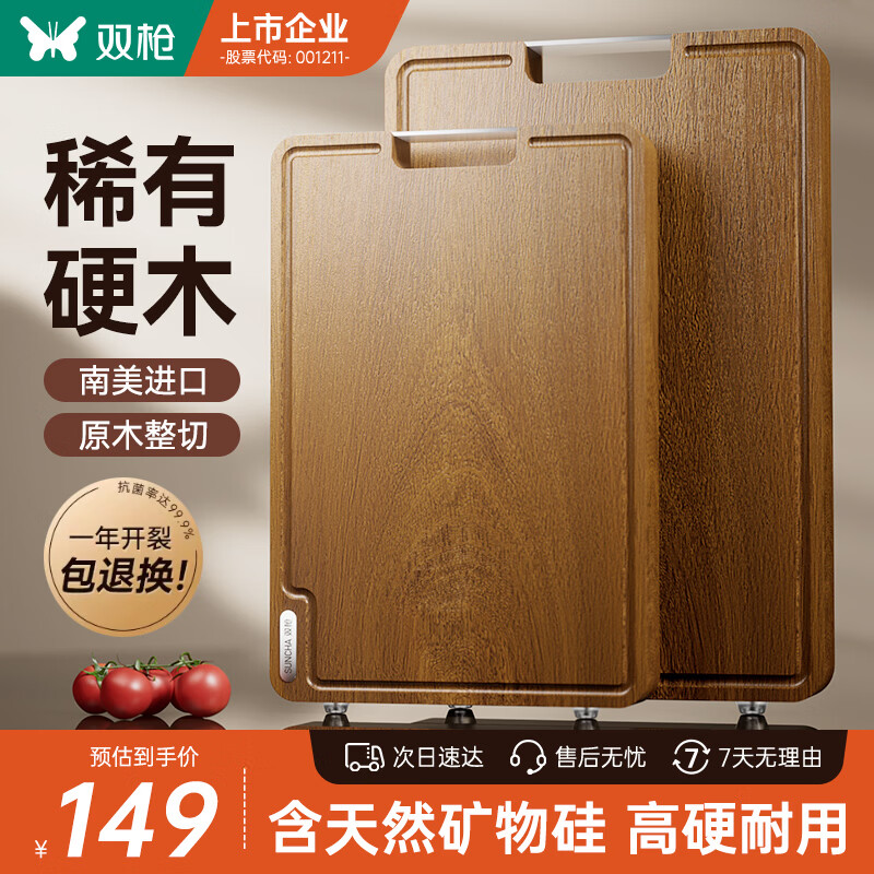 自营双枪(Suncha)黑金檀菜板整木切菜案板 家用食品级抗菌防霉实木砧板40*28*2.5cm