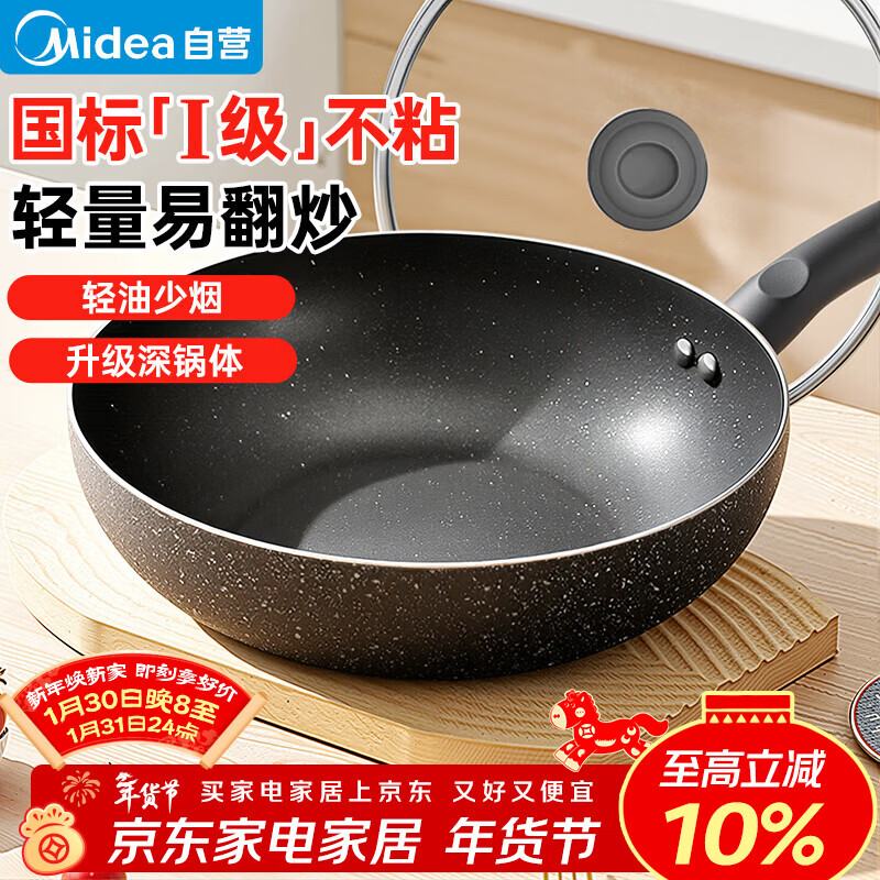 自营美的(Midea)炒锅不粘锅炒菜锅平底锅煎锅厨具电磁炉锅燃气通用易洁少油烟