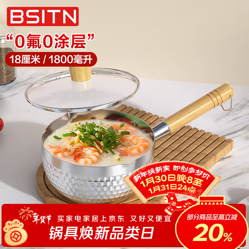 自营BSITN雪平锅不锈钢小奶锅18cm煮奶锅烫锅婴儿辅食锅燃磁通用含盖5428