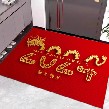 旗舰店KAYE龙年地垫入户门进门喜庆脚垫春节红色垫子家用新年玄关门口防滑垫 SJR-新年快乐 40x60 cm