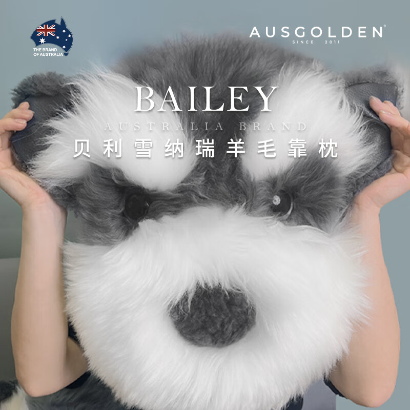 旗舰店AusGolden澳洲贝利雪纳瑞羊毛抱枕公仔办公室汽车靠垫枕卡通玩偶羊皮毛绒 雪纳瑞:岁月静好【澳洲羊毛皮】