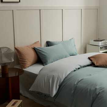 旗舰店AIDLI 60支贡缎316根全棉四件套 高支高密纯色双人四件套 香槟金+皓月灰 200*230cm(1.5/1.8m)床单款