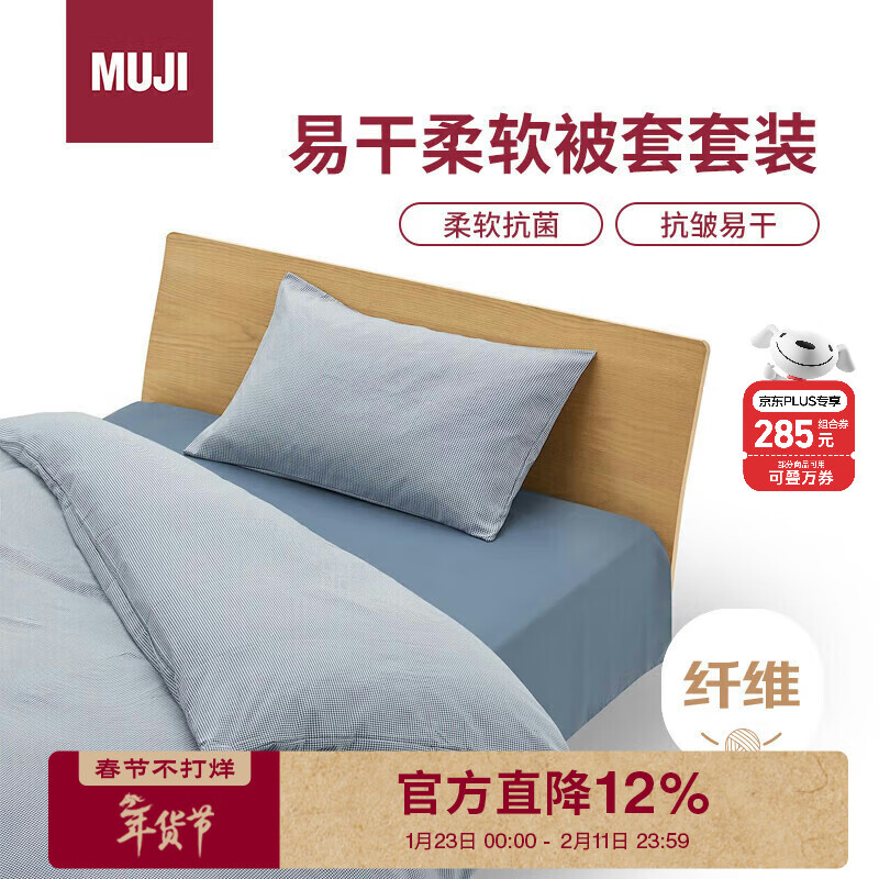 自营MUJI易干柔软被套套装 三件套藏青色格纹 床单式/小单人床用 90x200cm