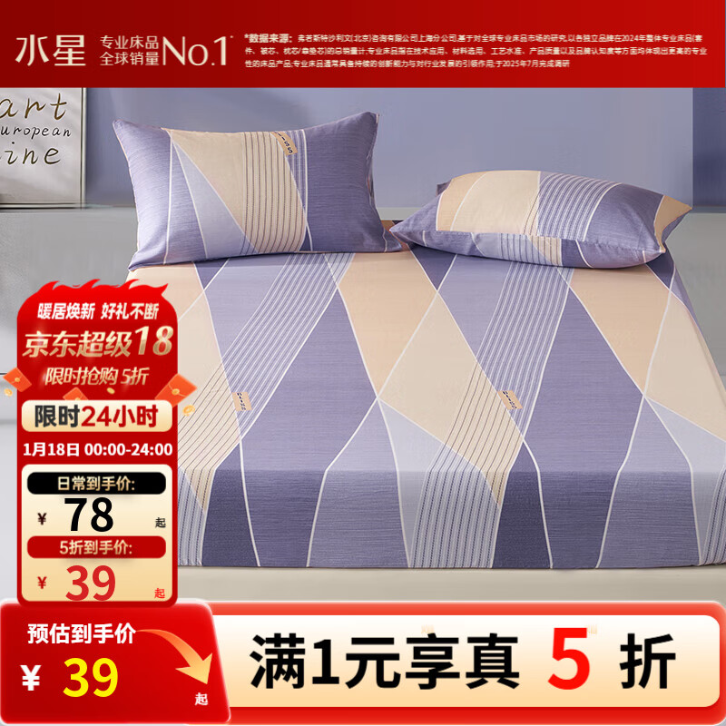 旗舰店可口可乐亲肤磨毛加厚床笠单件防脏被罩 水波潋滟 120*200cm