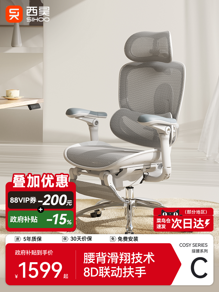 百亿补贴【新品】西昊C300二代人体工学椅电脑椅久坐办公电竞椅子书房座椅