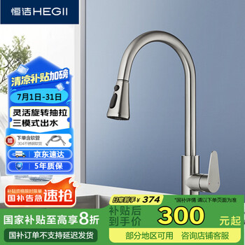 自营恒洁(HEGII)抽拉式厨房水龙头 304不锈钢三出水水槽冷热水龙头HMF910-412-SD