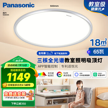 自营松下(Panasonic)吸顶灯智能全光谱松准教室照明护眼灯 65瓦HHXS7005【包安装】