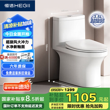 自营恒洁(HEGII)马桶561 超旋风大冲力虹吸式家用节水坐便器HC0561DT-A-305