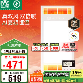旗舰店雷士(NVC)母婴级智能浴霸温度设定智能APP控制暖风机浴室暖风照明排气一体 母婴级RA95高显|离子杀菌