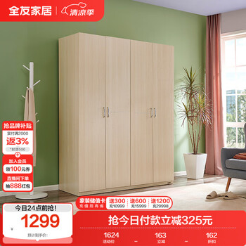 自营全友家居 衣柜现代简约平开门衣柜卧室家具四门大衣柜国家补贴
