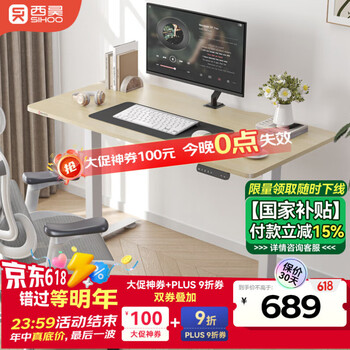 自营西昊D03 电动升降桌电脑桌电竞桌升降书桌办公学习桌子1.2m浅枫木色