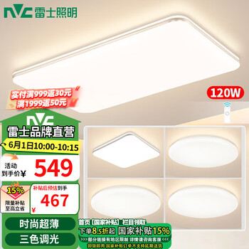 旗舰店雷士(NVC)led吸顶灯奶油风客厅灯卧室灯灯具 现代简约遥控无极调光客厅大灯 【四室一厅-5灯】