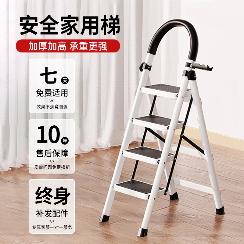 自营远耐乔迁梯子家用折叠梯工程梯多功能人字梯伸缩加厚室内楼梯-白四步