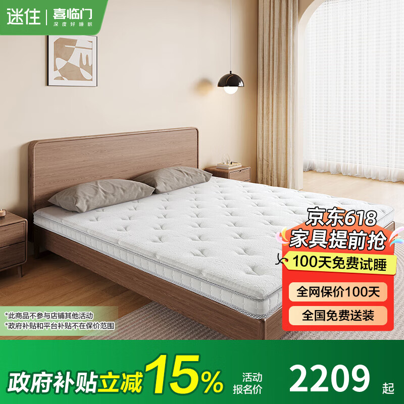 自营城市爱情喜临门抗菌防螨偏硬舒脊记忆棉轻音独袋弹簧床垫 大白垫H 1.8x2米