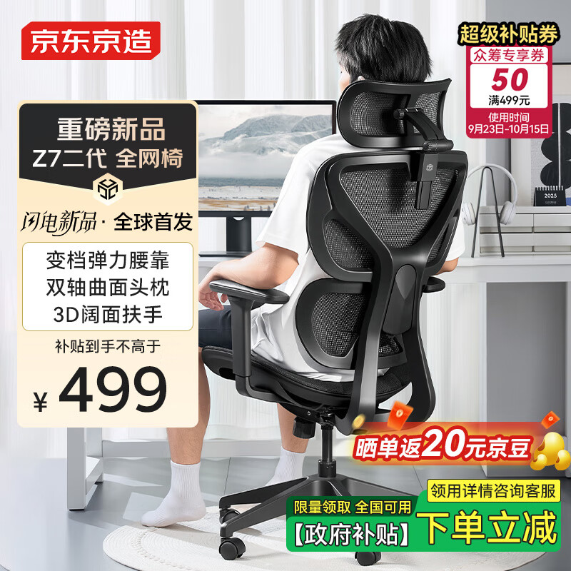 自营京东京造Z7 2代全网人体工学椅办公椅电脑椅子人工力学座椅电竞椅学习椅黑