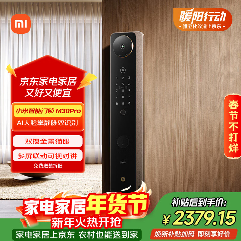 自营小米智能门锁M30Pro 掌静脉人脸锁 指纹锁电子锁密码锁防盗门锁