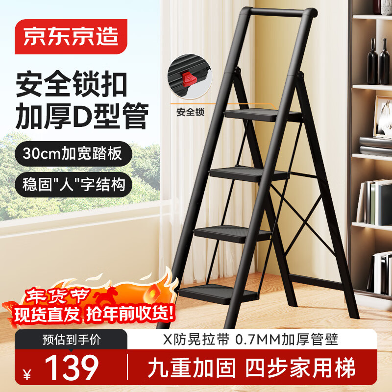 自营京东京造梯子家用四步折叠梯子室内多功能爬梯加厚人字梯单侧工程梯