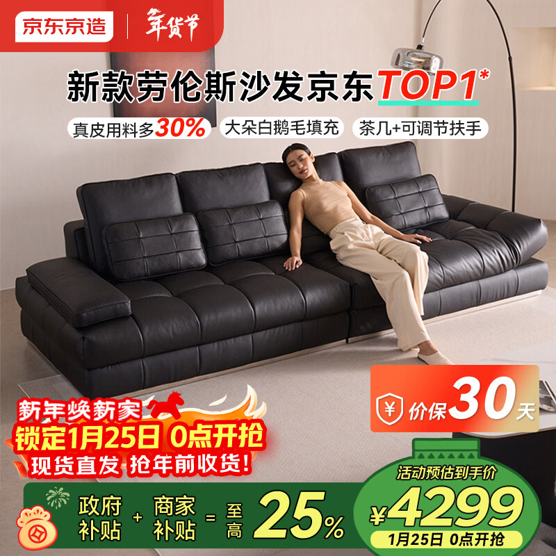 自营京东京造家居劳伦斯真皮沙发 靠包扶手可调节客厅大户型直排沙发3.1m