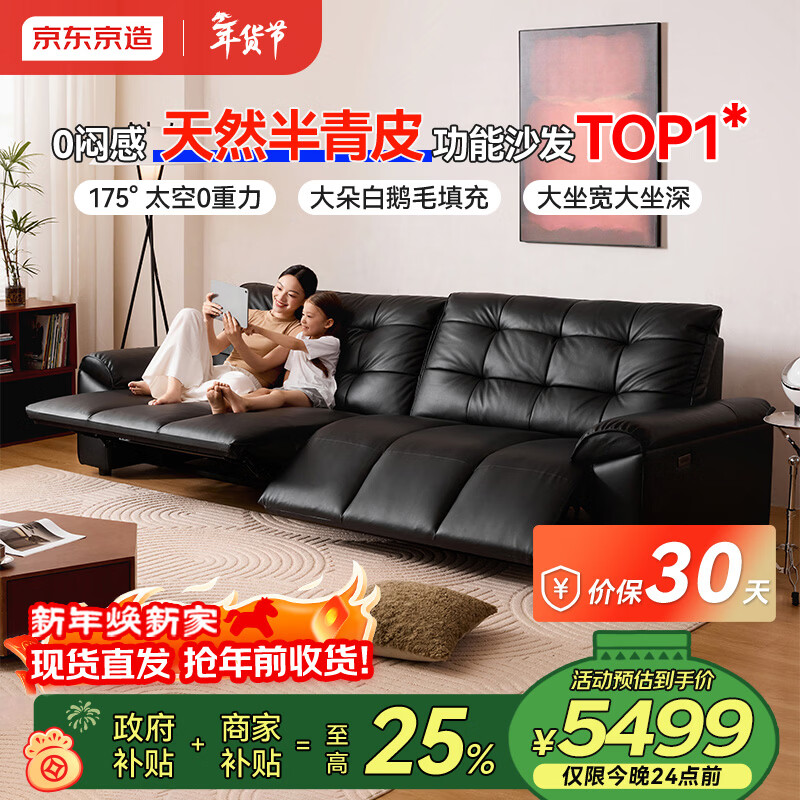 自营京东京造大黑熊半青皮电动功能沙发真皮客厅双电动2.8m