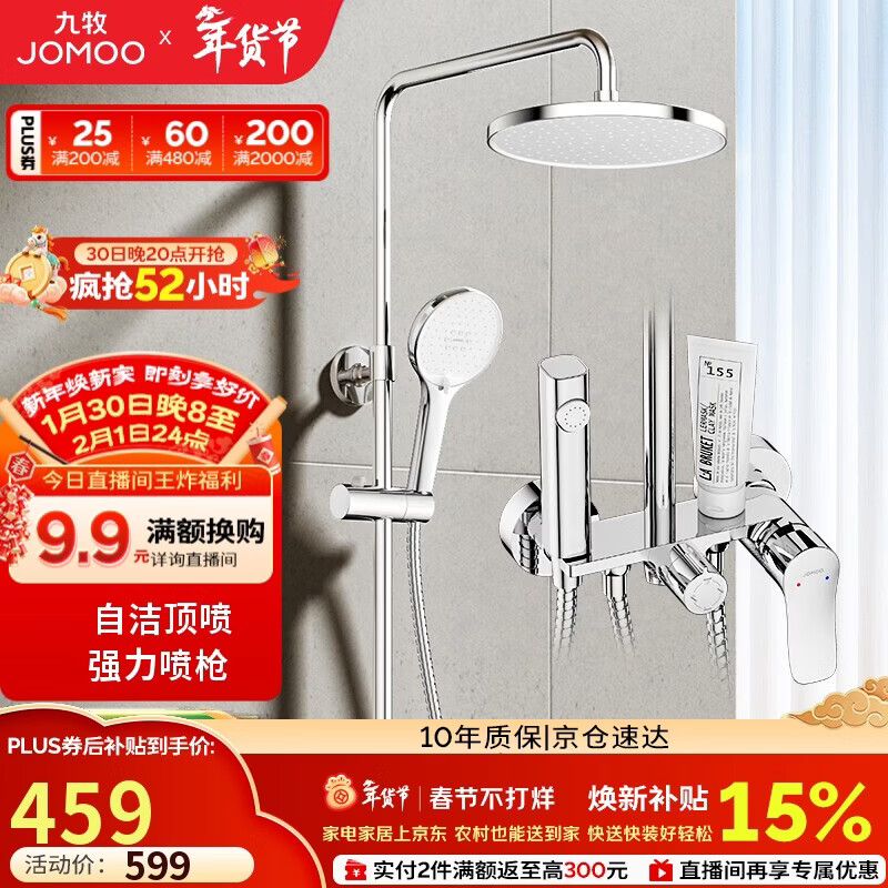 自营九牧(JOMOO)淋浴花洒套装自动除垢喷枪淋浴器36633-526/1B-1
