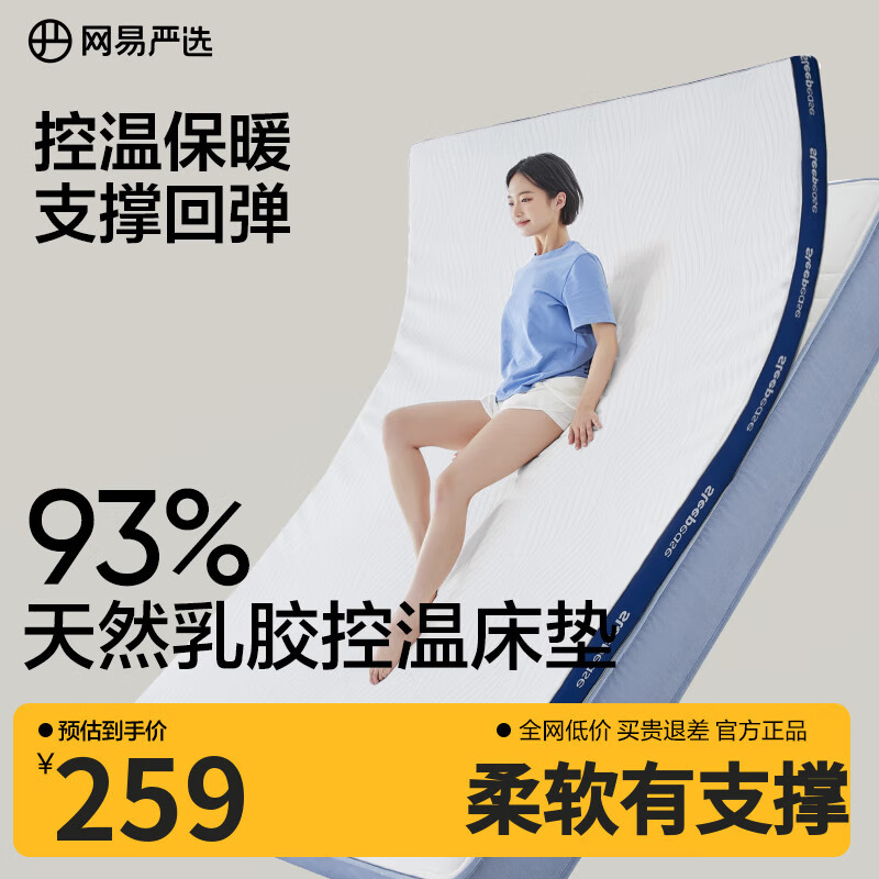 自营网易严选93%天然乳胶床垫宿舍床垫床褥学生床垫【控温款】90*190*6.5cm
