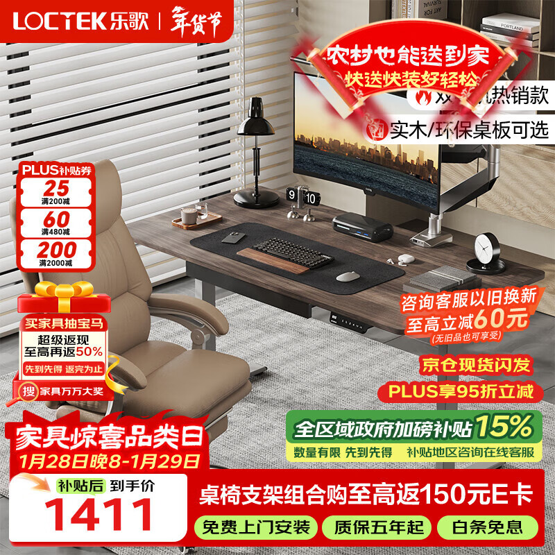 自营乐歌电动升降桌电脑桌办公桌学习桌ES2Pro/1.4m灰木纹色