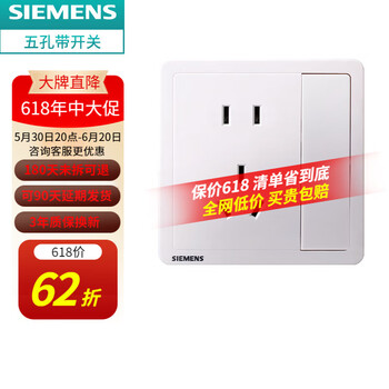 西门子(SIEMENS)致典系列雅白 开关插座面板电源墙壁插座 家用墙壁暗装86型 五孔带开关(单控)