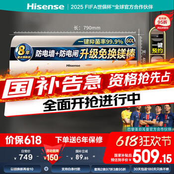 自营海信(Hisense)60升电热水器家用速热5.5倍增容健康灭菌升级免换镁棒大屏触控节能省电DC60-W1513T国家补贴15%