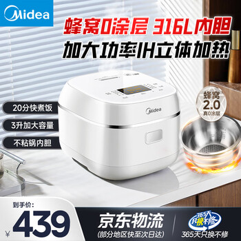 旗舰店美的(Midea)电饭煲微压IH加热电饭锅0涂层2-4-5-8人无涂层316L不锈钢内胆母婴级可煮小米粥智能预约一级能效 316L母婴级内胆 3L 无涂层不粘锅