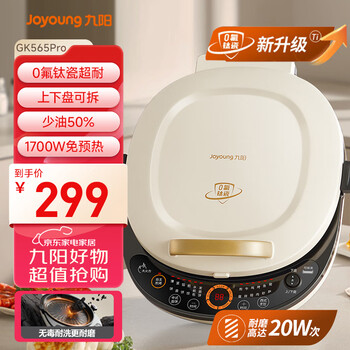 自营九阳(Joyoung)电饼铛三明治机早餐机36mm深烤盘0氟钛瓷超耐磨少油煎烤机大火力烙饼锅GK565Pro