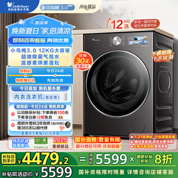 自营小天鹅(LittleSwan)滚筒洗衣机全自动家用 带烘干洗烘一体【小乌梅3.0高奢版 TD12VE40PRO】家电国家补贴20% 以旧换新